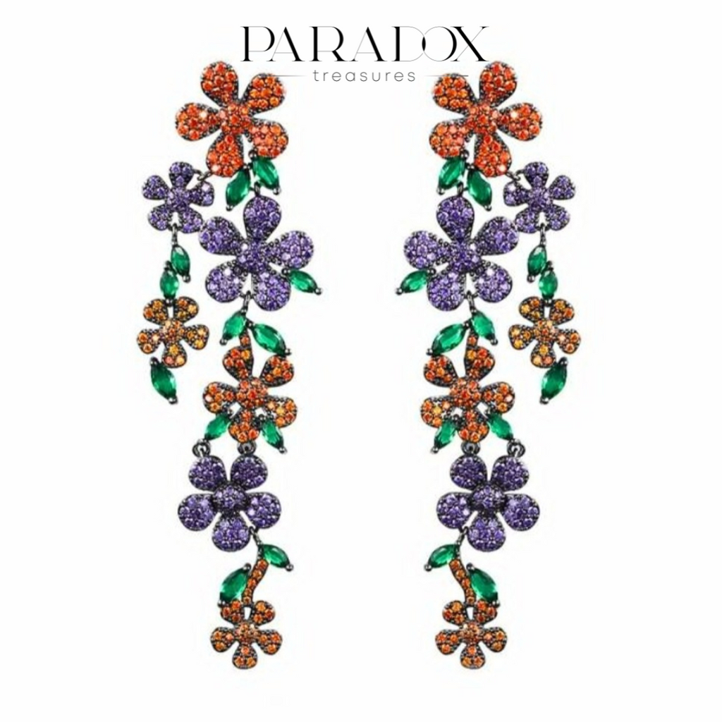 Purple and orange cubic zirconia drop earrings with elegant finishings