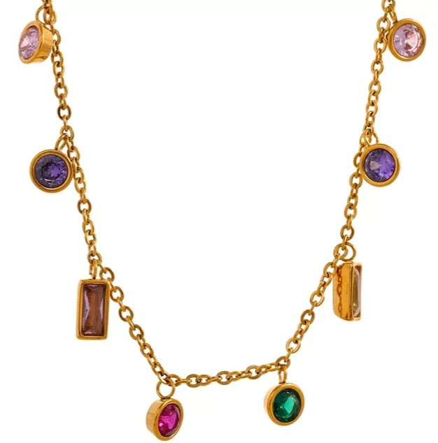 Gold plated stainless steel necklace with colorful stone details