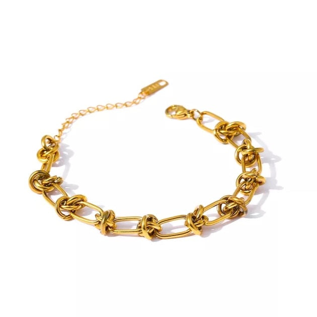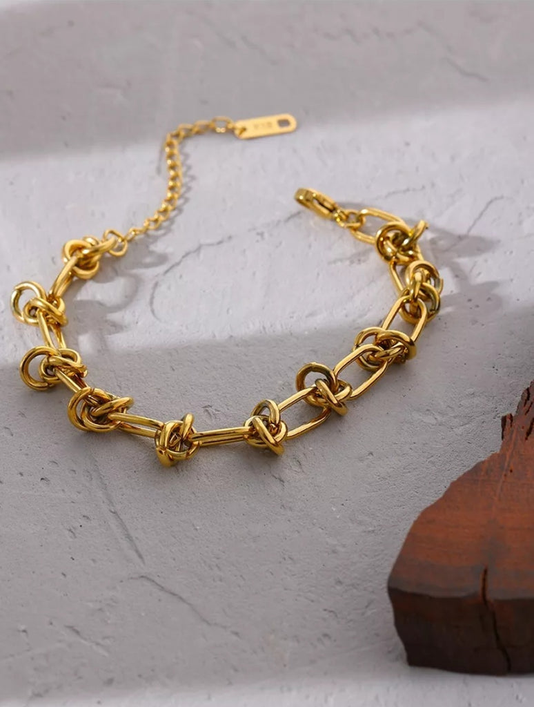 Gold plated stainless steel bracelet with knotted details