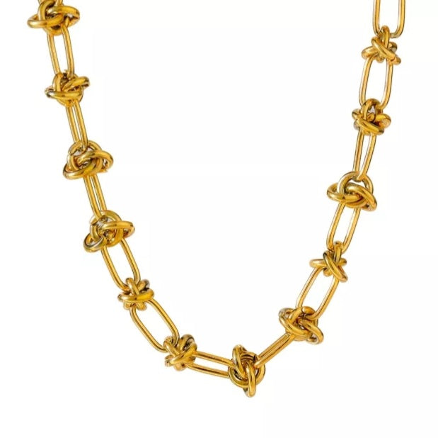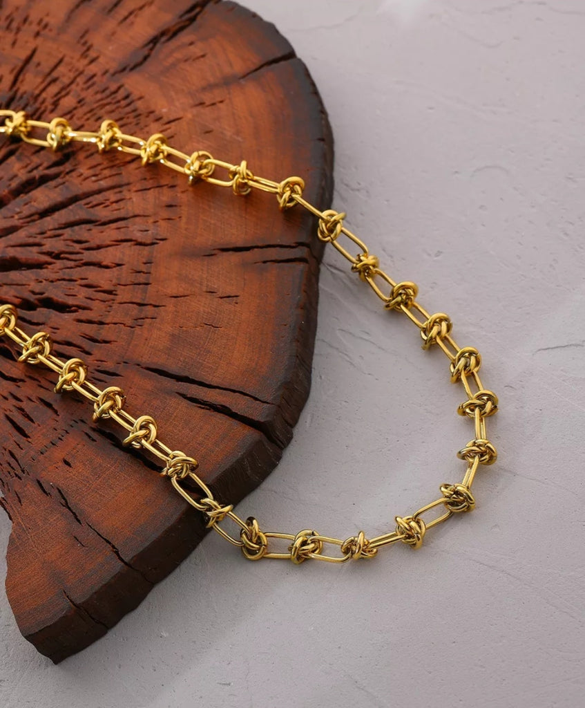 Gold plated stainless steel necklace with knotted details